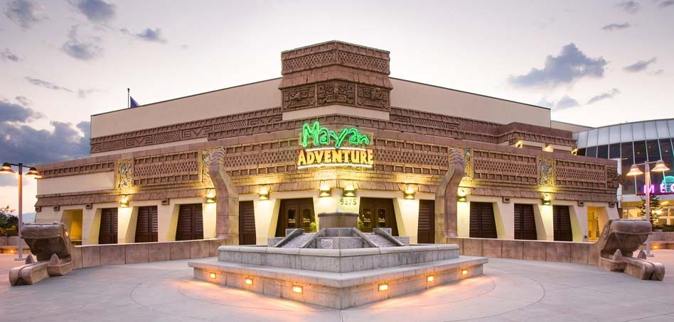 The Mayan AKA Mayan Adventure, a 45-foot-waterfall–themed restaurant and arcade, opened 2000 in Sandy, Utah. It closed in 2011; KSL News documented its demolition and fondly remembered its volcano-themed game room.